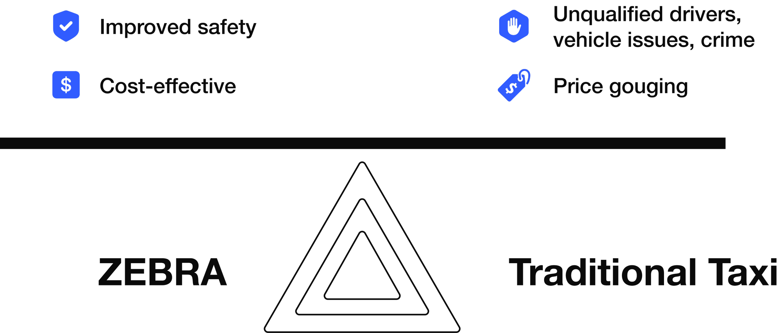 Customers → Need a safer, affordable, reliable and convenient alternative to traditional taxis.
