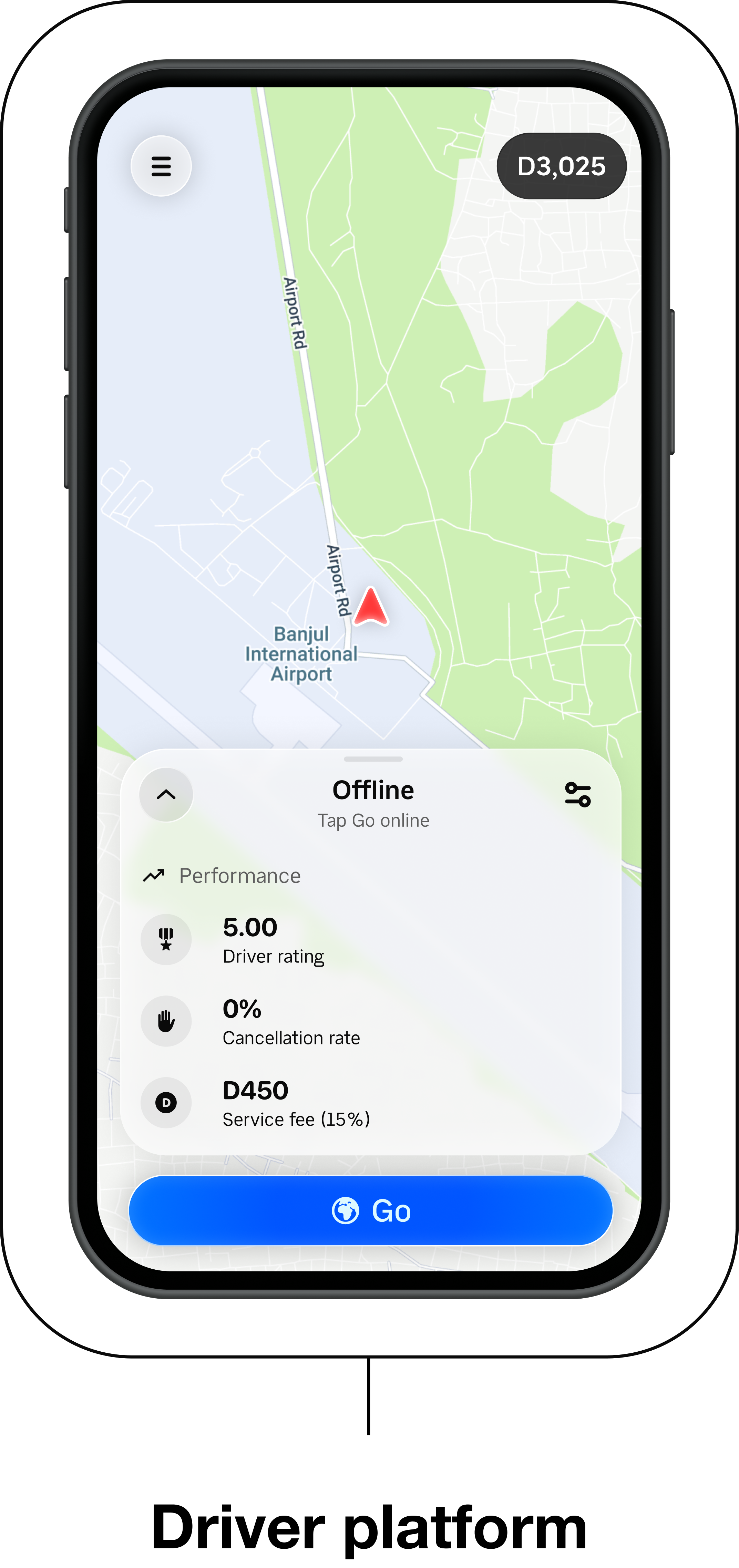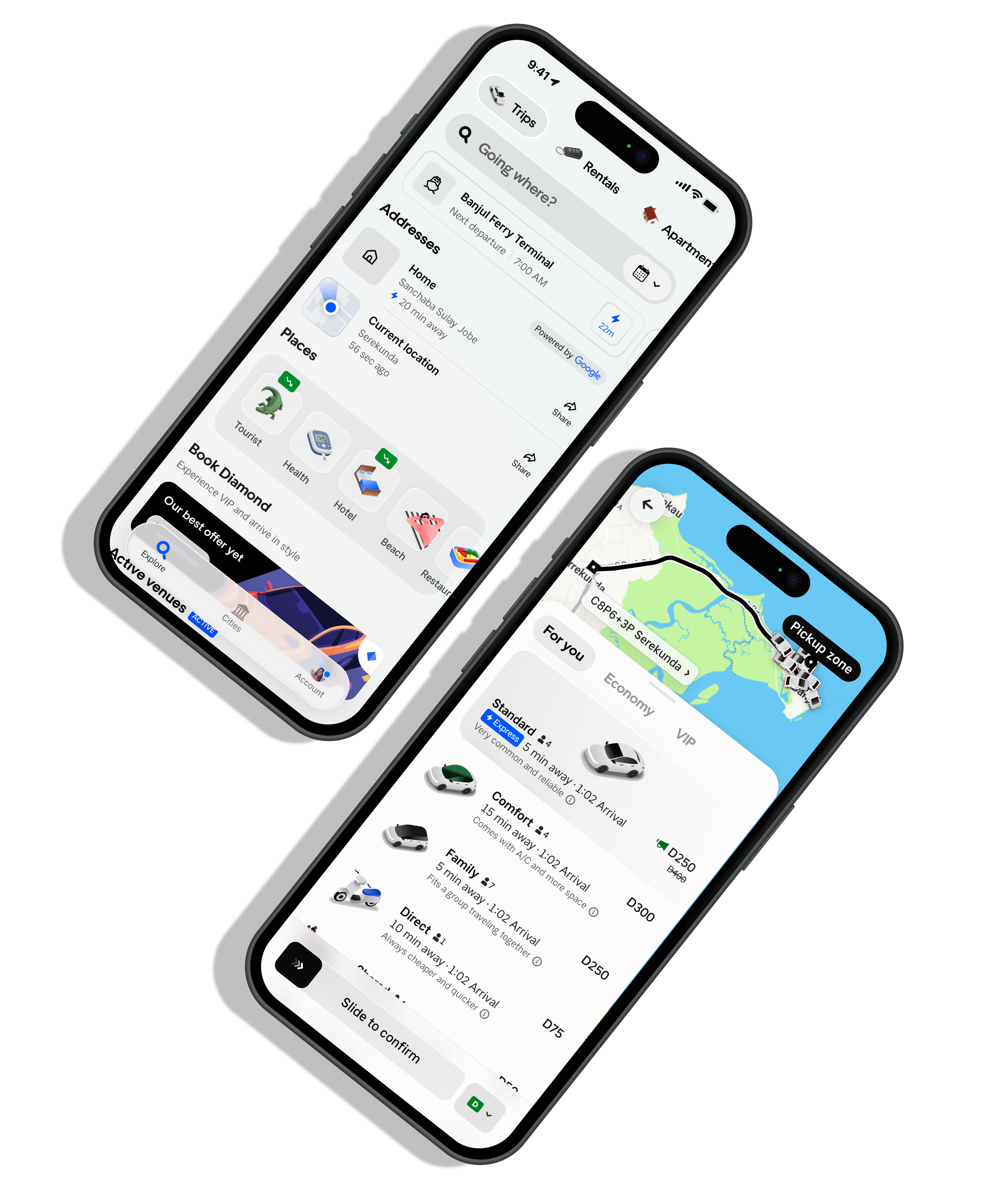 Customer platform empowers locals and tourists by providing leads to drivers. After downloading the app, they’re able to enter their pickup and drop off address, select their vehicle of choice then finalize by confirming the trip.